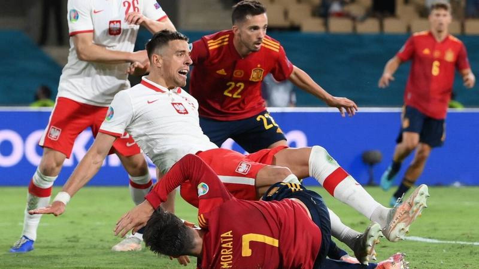 » españa vs polonia en vivo. Este será el primer encuentro entre españa y polonia en un gran torneo importante. En empate a uno terminó el partido de la segunda jornada del grupo e entre españa y polonia. La previa de goal del españa vs. Morata, con la camiseta de españa.